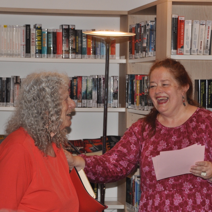 BuchBerlin am letzten Wochenende - wie jedes Jahr dabei: Berliner Mörderische Schwestern. Diesmal organisiert von Helene Baumann (mit Hut) und Karin Ernst (im Krankenhaus).