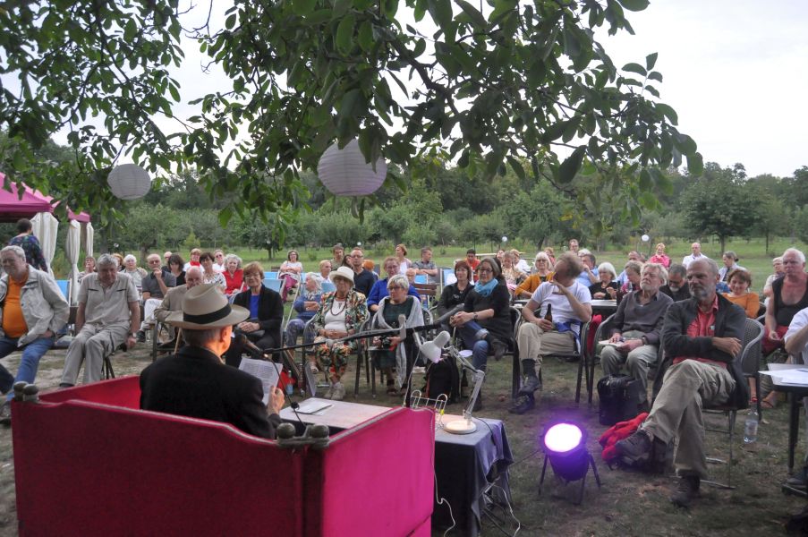 Nacht der Poesie im Garten des Museums Alexandrowka. 11 Autorinnen und Autoren stellen sich je 6 Minuten dem Voting des Puplikums. 3 Preise werden vergeben, gestifftet von der Stiftung Kremer, Potsdam. Es lesen: Tini Anlauff, Justyna Fijalkowska, Jana Franke, Thomas Frick, Heinrich von der Haar, Arnold Pistiak, Torsten Purps, Hans-Peter Roentgen, Jana Weinert, Iris Zimpel und die Mörderische Schwester Heidi Ramlow.