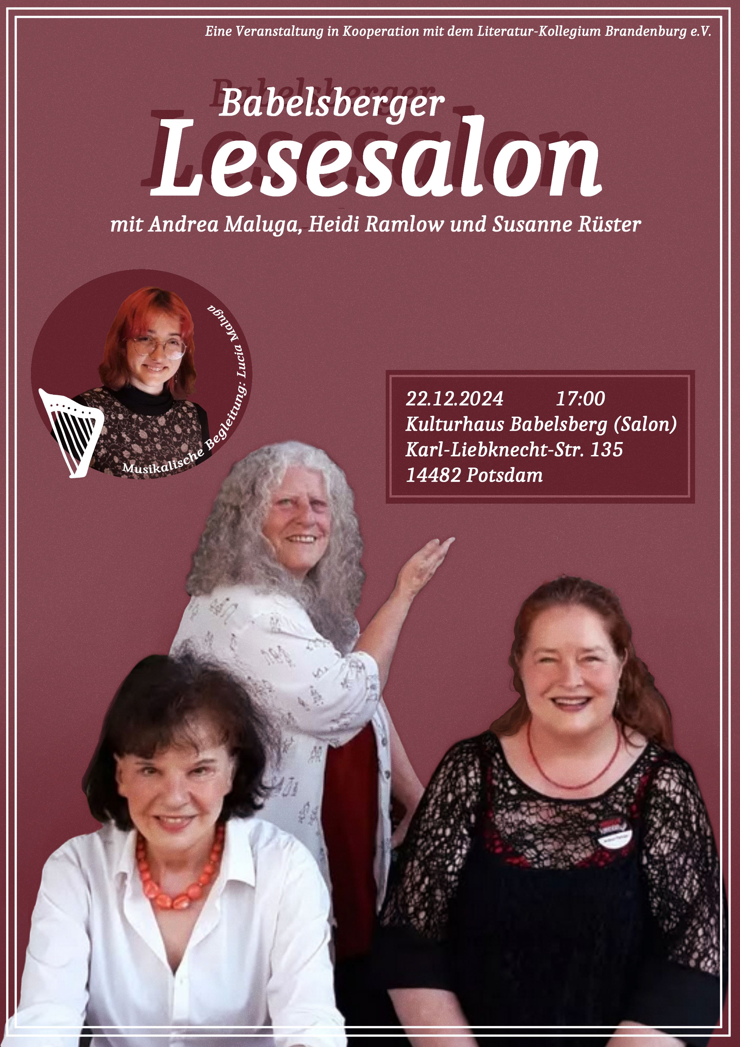 Im Kulturhaus wird es weihnachtlich. Andrea Maluga, Heidi Ramlow und Susanne Rüster lassen ihren kriminellen Ideen frauen Lauf und vergnügen Sie mit Weihnachtskrimis. Lucia Maluga umrahmt den Abend mit zarten Griffen an der Harfe.