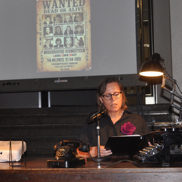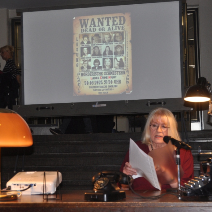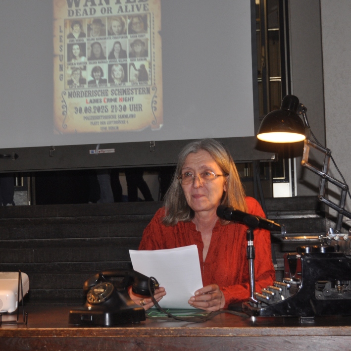 Was für eine Lange Nacht der Museen!!! Wieder dabei in Tempelhof die Berliner Mörderischen Schwestern. Uwe Hundt, der Vorsitzende der Polizeihistorischen Sammlung, begrüßte zusammen mit Andrea Maluga die vielen Zuhörer. Es lasen: Swenja Karsten, Karin Ernst, Gisela Witte, Salean Maiwald, Ute Christensen, Anne Bandel, Heidi Ramlow, Katte Rosch, Helene Baumann und Andrea Maluga, an der Harfe Lucia Maluga. Wir danken allen, die im Hintergrund dafür gesorgt haben, dass die Veranstaltung so gelungen war. Aber vor allem gilt der Dank den Zuhörern!