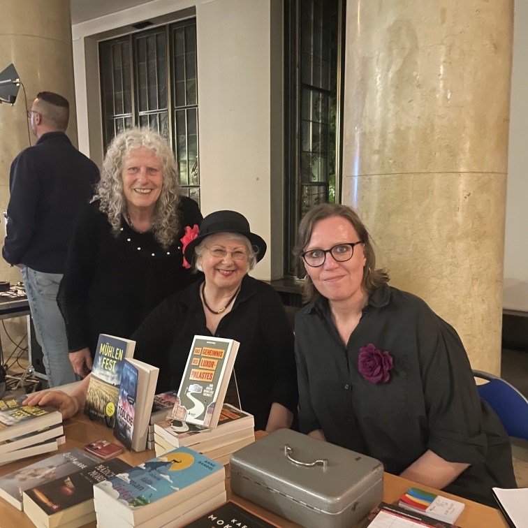 BuchBerlin am letzten Wochenende - wie jedes Jahr dabei: Berliner Mörderische Schwestern. Diesmal organisiert von Helene Baumann (mit Hut) und Karin Ernst (im Krankenhaus).